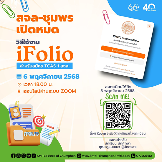 สจล-ชุมพร รับสมัครนักศึกษาใหม่ ระดับปริญญาตรี TCAS 1-1 Portfolio Read More »