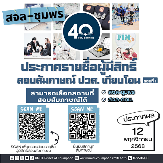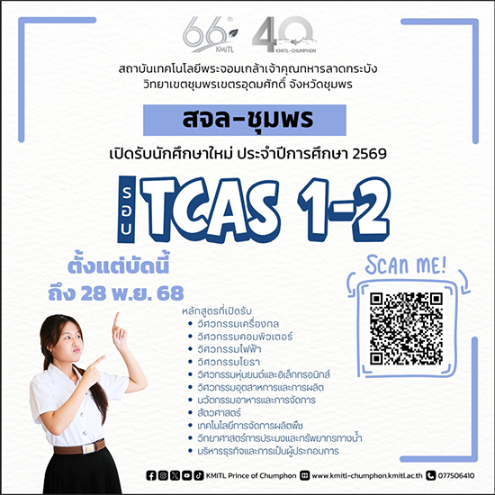 สจล-ชุมพร เปิดรับสมัครสอบตรง ปวส. เทียบโอน รอบที่ 2