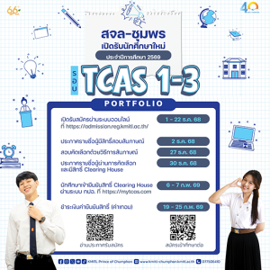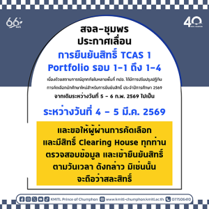 สจล-ชุมพร รับสมัครนักศึกษาใหม่ ระดับปริญญาตรี TCAS 1-3 Portfolio