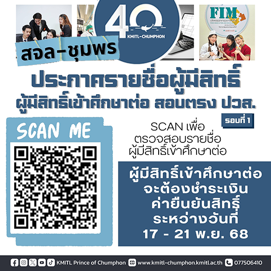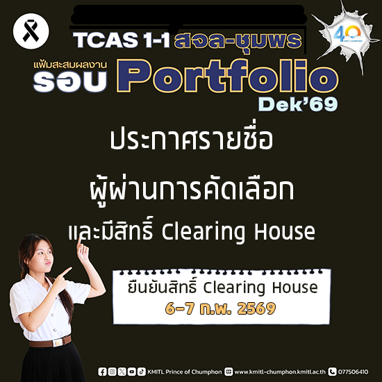 สจล-ชุมพร รับสมัครนักศึกษาใหม่ ระดับปริญญาตรี TCAS 1-1 Portfolio Read More »